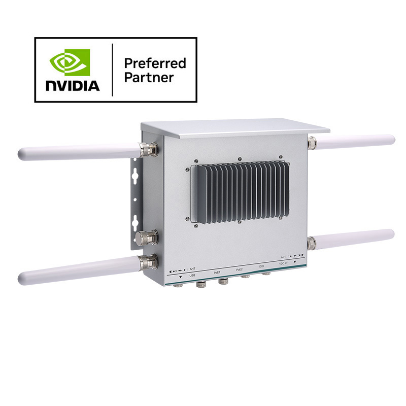 Sistema de inteligencia artificial Fanless Edge resistente con clasificación IP67 con NVIDIA® Jetson Orin™ NX, 2 PoE, 1 USB, 8-CH DIO y 9 a 36 VDC para aplicaciones de inteligencia artificial Outdoor Edge